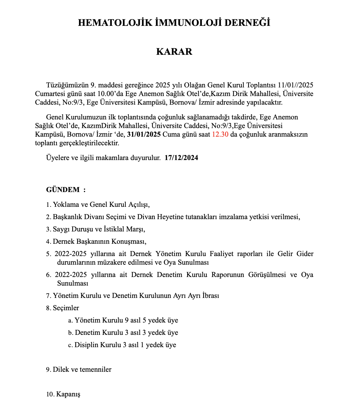 2025 yılı Olağan Genel Kurul Toplantısı Karar
